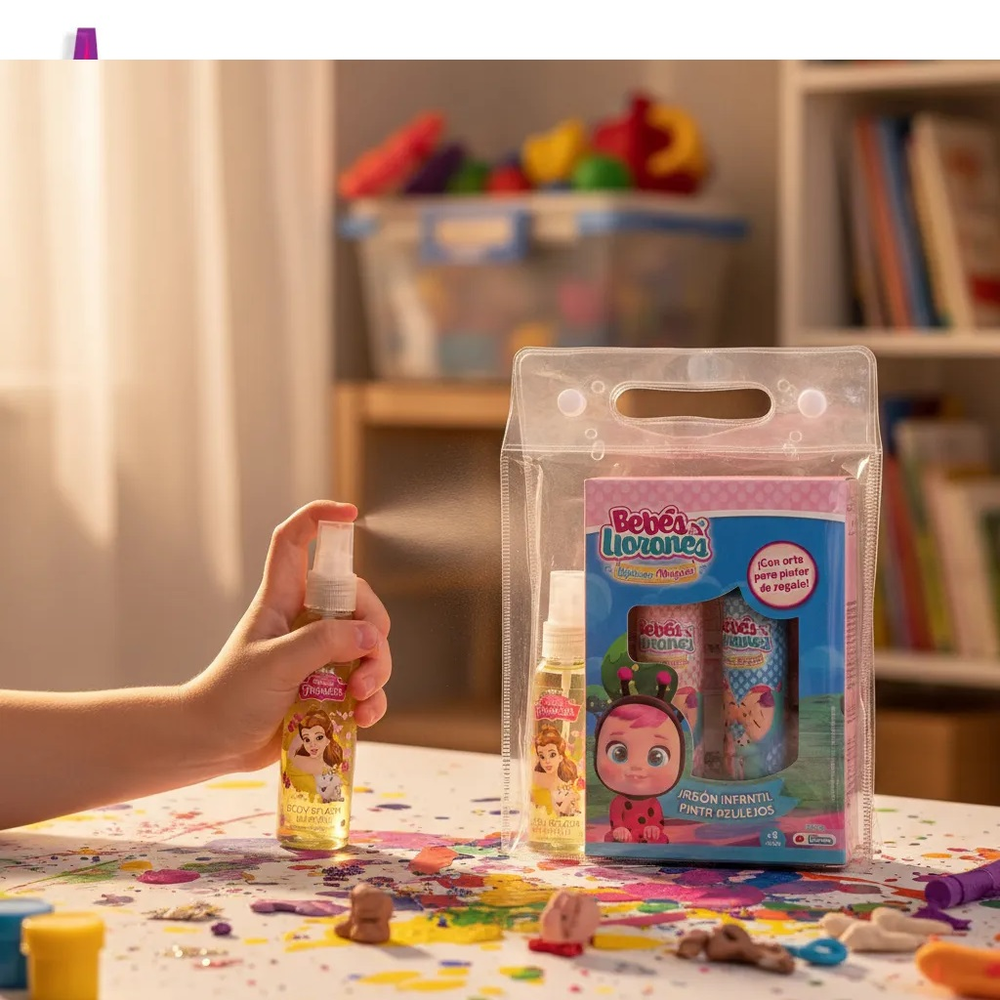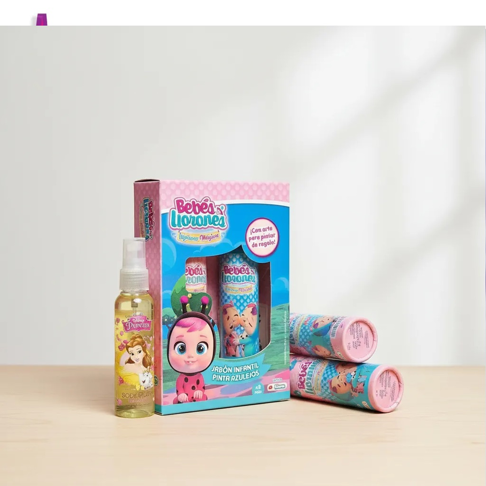 Disfrutá de la magia de Disney con este combo especial que incluye un perfume Body Splash de Bella y un pinta azulejos de Bebés Llorones. Es el regalo ideal para niñas que aman los colores, la diversión y los personajes de sus películas y juguetes favoritos.