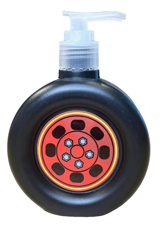 1 Jabón líquido con envase en forma de rueda de auto