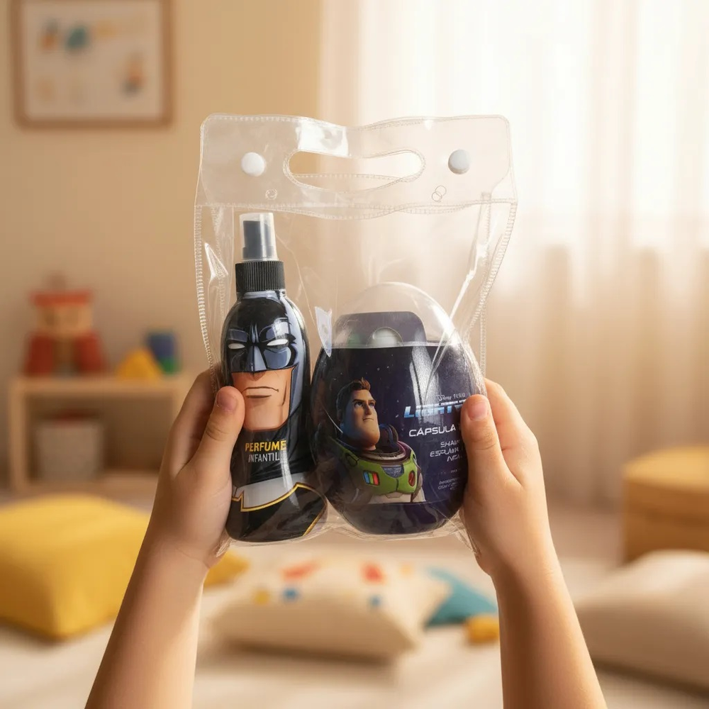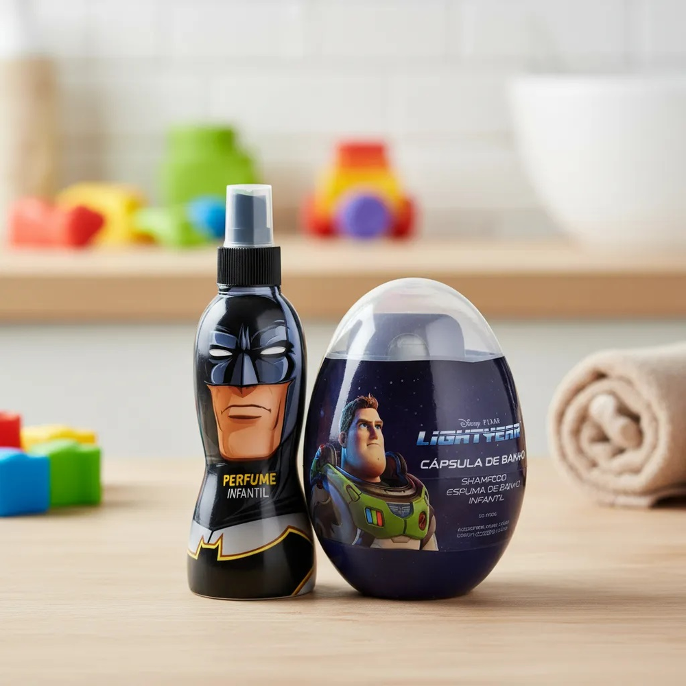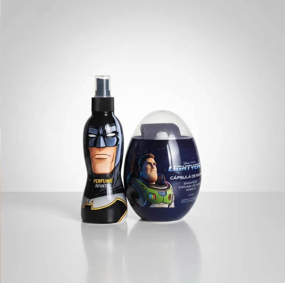 Incluye: 1 cápsula de Buzz Lightyear con shampoo y espuma de baño 1 perfume Batman de 200 ml Fragancias suaves y agradables, pensadas para uso infantil Envases coloridos y temáticos de los personajes más populares Presentación ideal para regalar o coleccionar