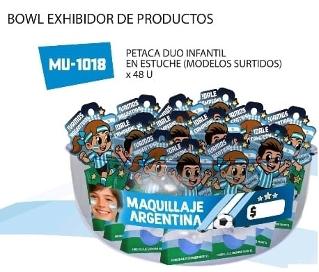 BOWL EXHIBIDOR ARGENTINA MUNDIAL 2026 maquillajes formitas surtidos x 48 unidades