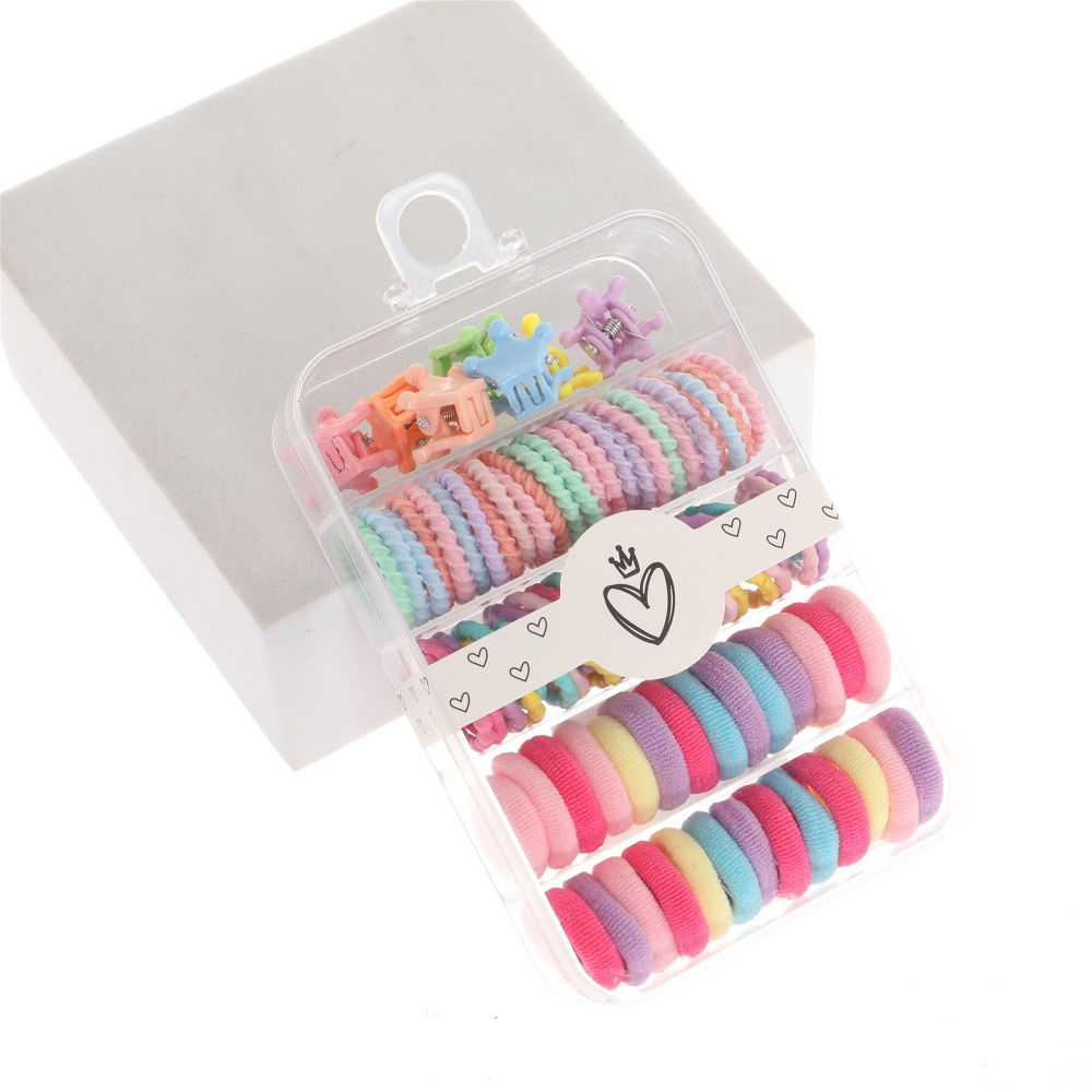 CAJA DE SET PARA EL PELO CON BROCHES Y COLITAS DE DIFERENTES TAMAÑOS Y COLORES