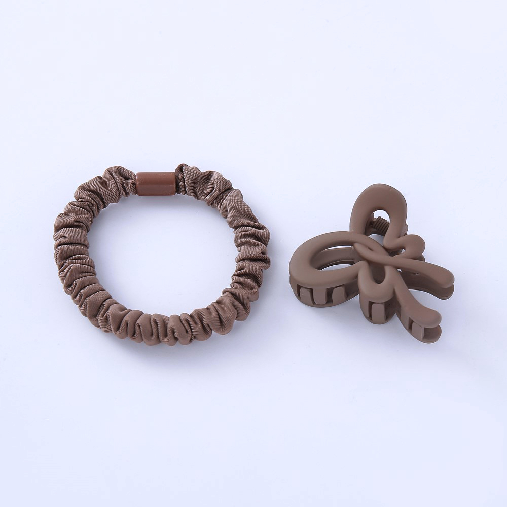 SET DE PELO CON COLITA + BROCHE DE COLOR MARRON O NEGRO